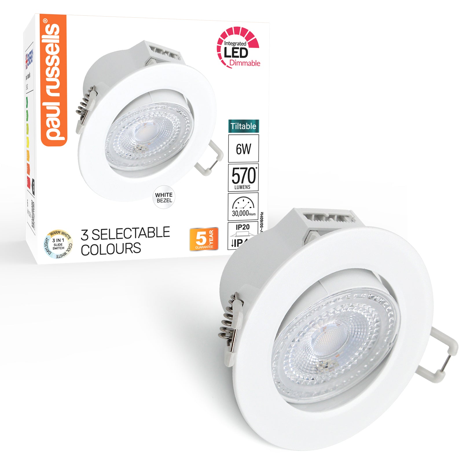 [Modern Ambiance] Paul Russells Exclusive LED Dimmable Recessed Spotlight features adjustable 3 colour temperatures (Warm White, Natural Cool White, Daylight – 3000K/4000K/6500K) for personalised ambience with a CRI>80.